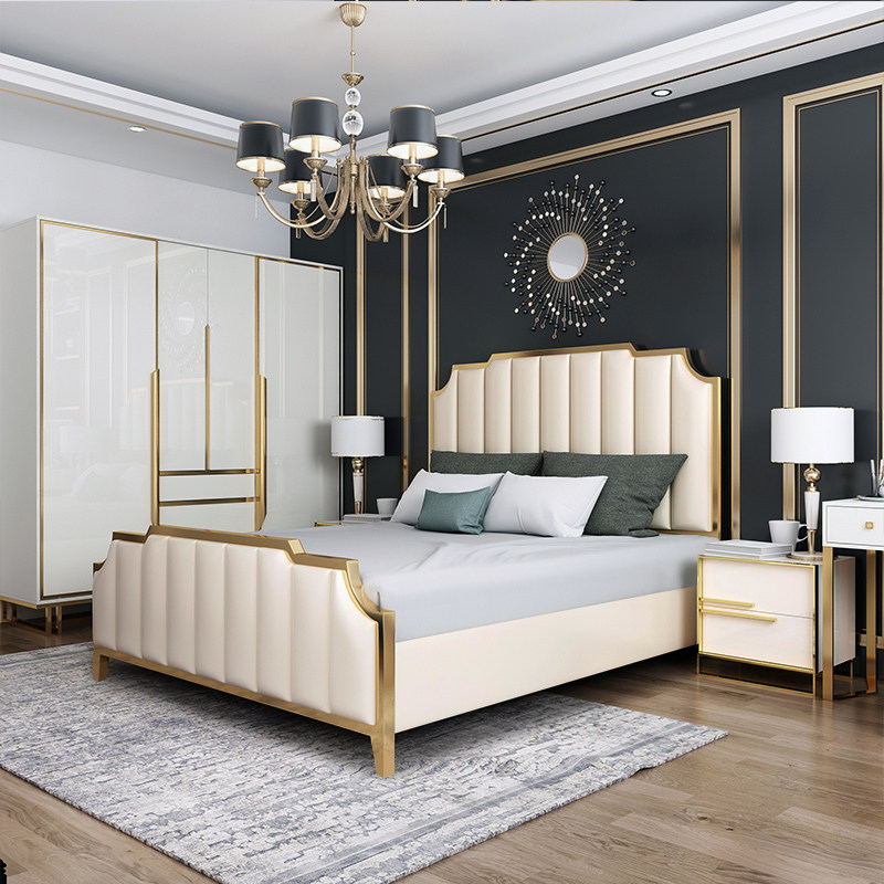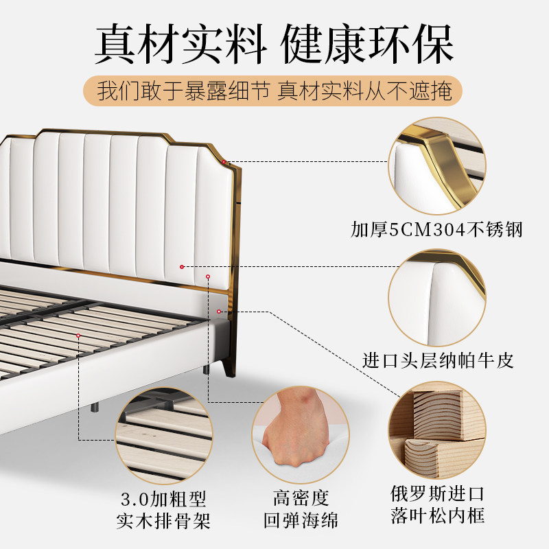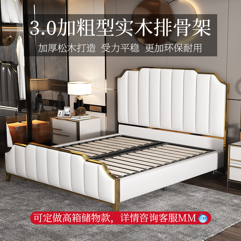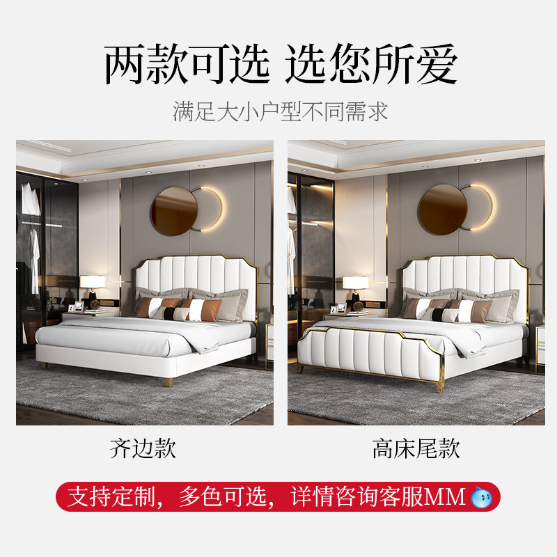Light extravagant genuine leather bed modern minimalist wind port type atmosphere double 2 m 2 2 main bedroom with big bed wedding bed tech cloth high foot