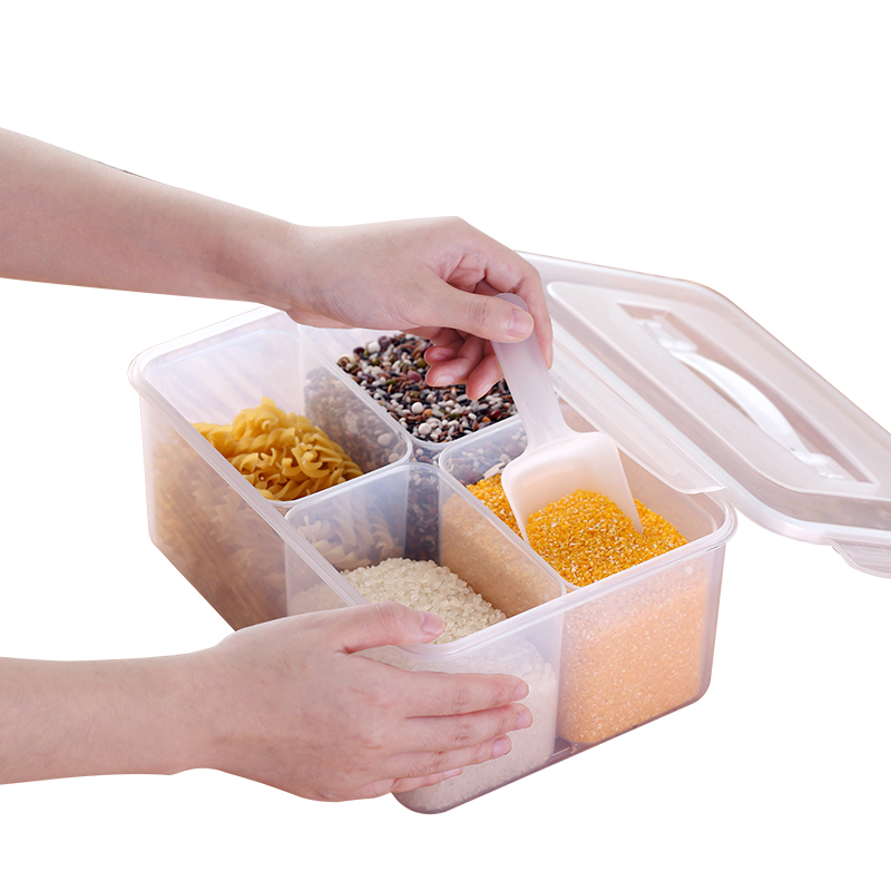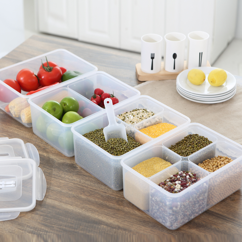 Four-divided Gfive cereals Cereals Containing box Sub-grid transparent Cereals Storage Tank Kitchen home Damp Seal Preservation box