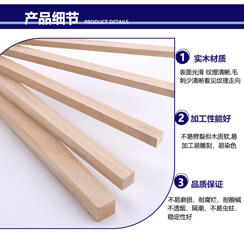 diy handmade model Long wooden stick Tung wood chip fine wooden stick wood chip Solid wood material pine strip Tung wood square