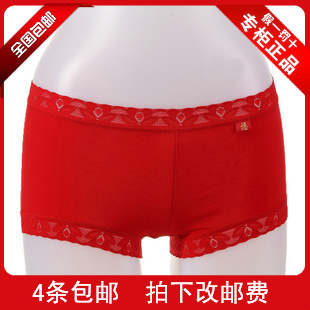 KELUO elastic cotton dog's life of the year underwear lace pure cotton lace - pure red mid - waist four - corner pants