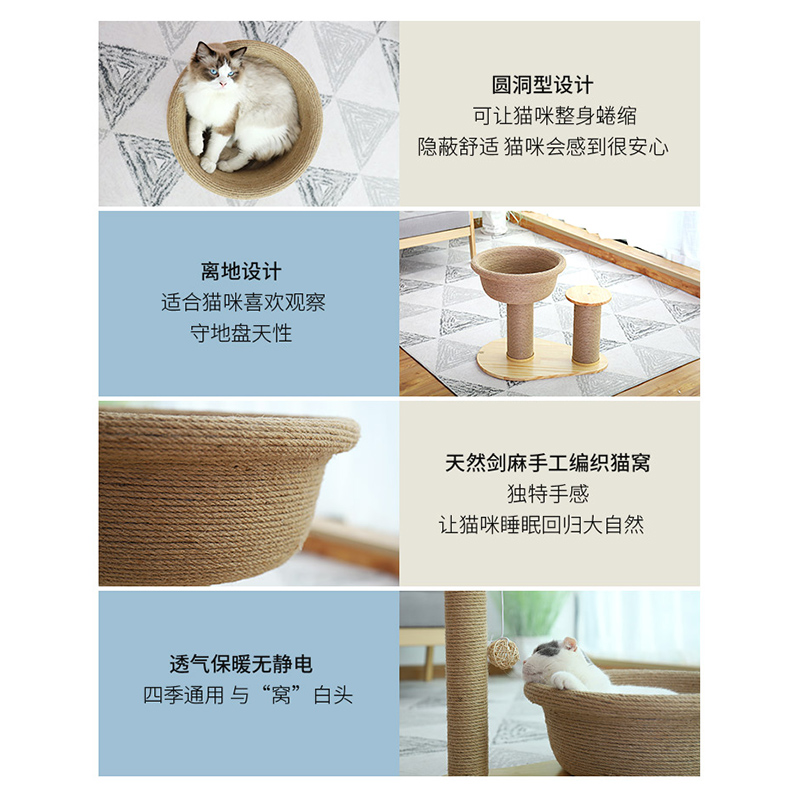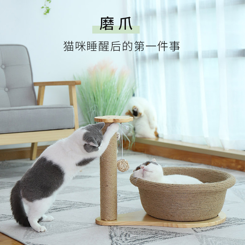 Cat climbing frame One-piece cat scratching post Cat scratching board Small cat tree sisal mat Cat nest house Solid wood cat platform Cat frame diy