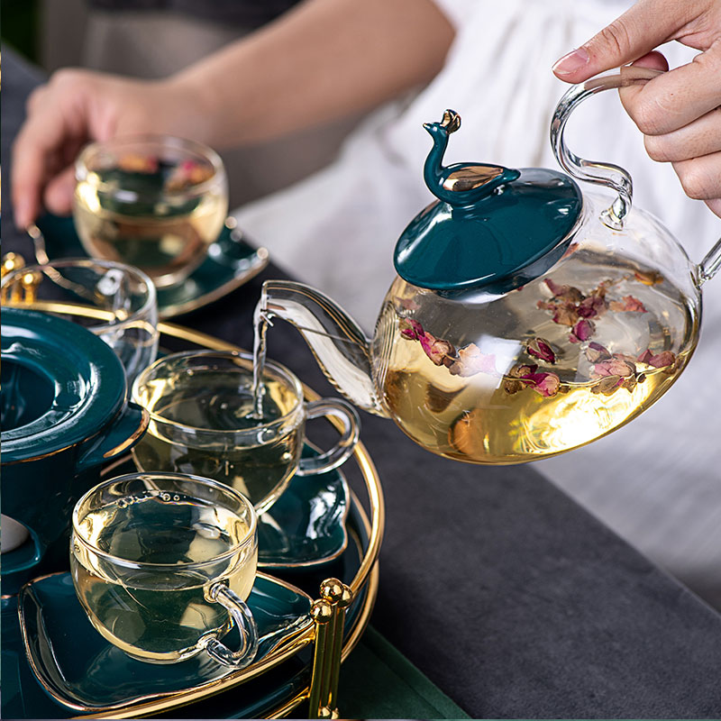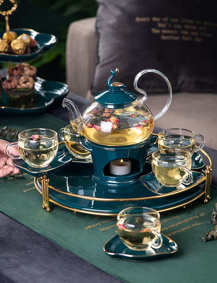 English light luxury glass flower teapot afternoon tea tea set boiled fruit teapot set flower teacup home candle heating