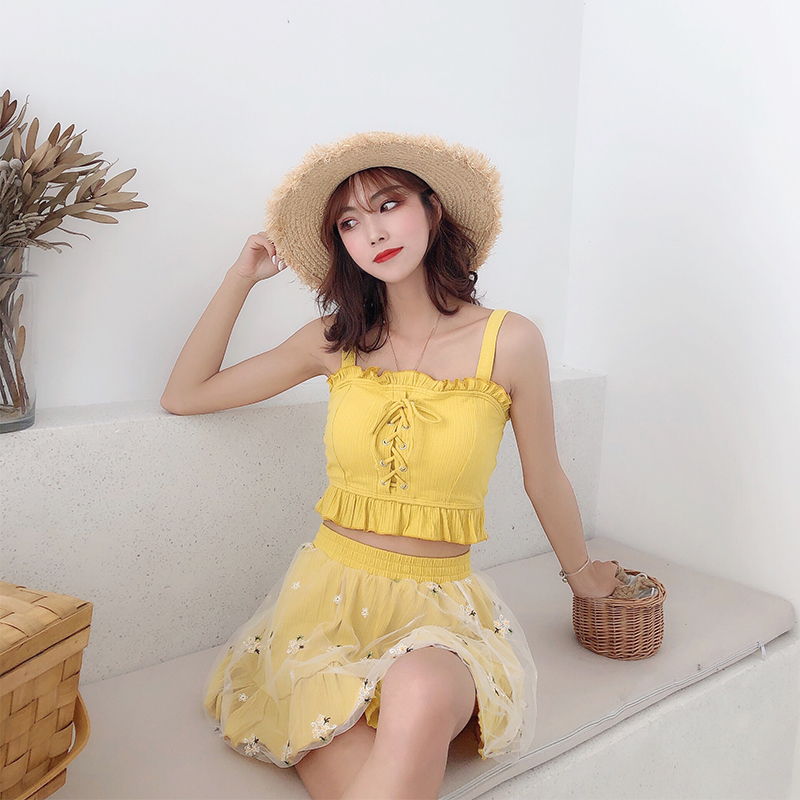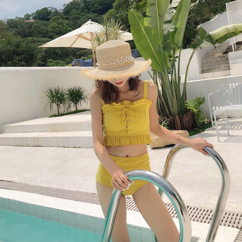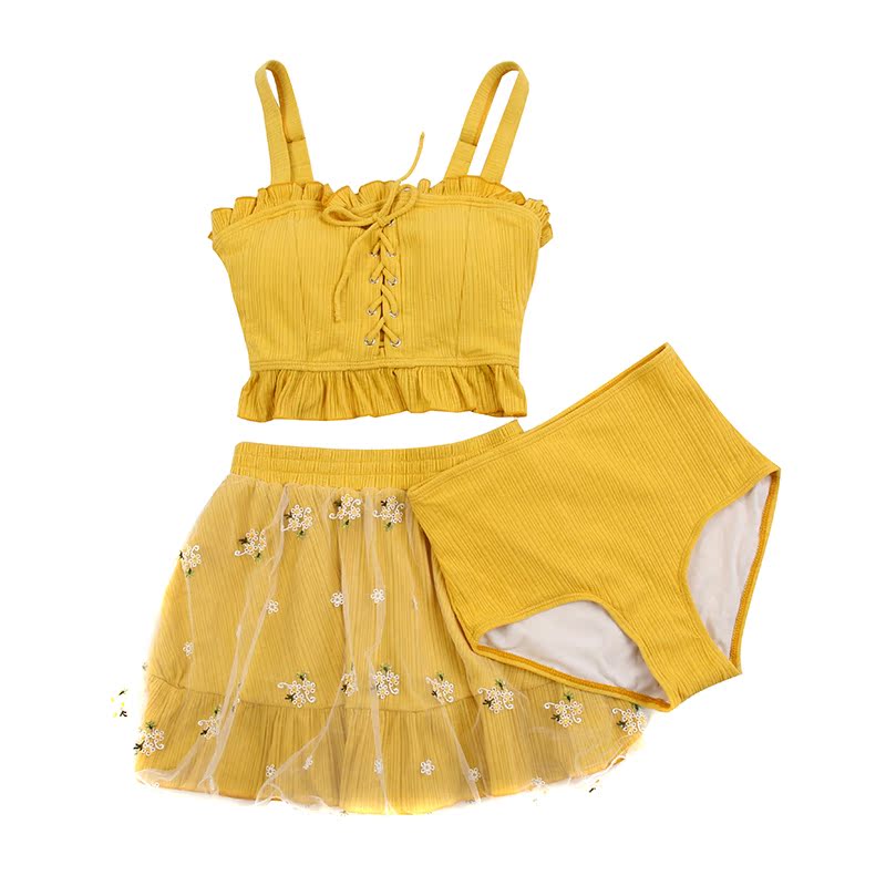 Peach Yaoyao swimsuit female cute girl sweet Japanese soft girl small chest gathered two-piece skirt small fresh three-piece set
