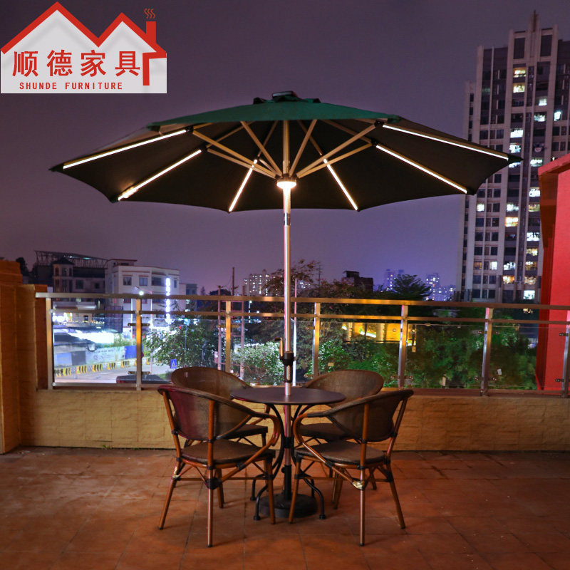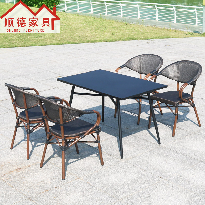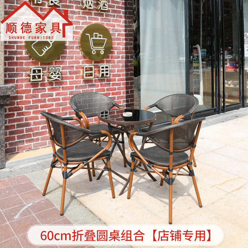 Outdoor table and chairs patio with umbrella balcony rattan chair Three sets Composition open milk tea shop Outdoor Leisure Chair