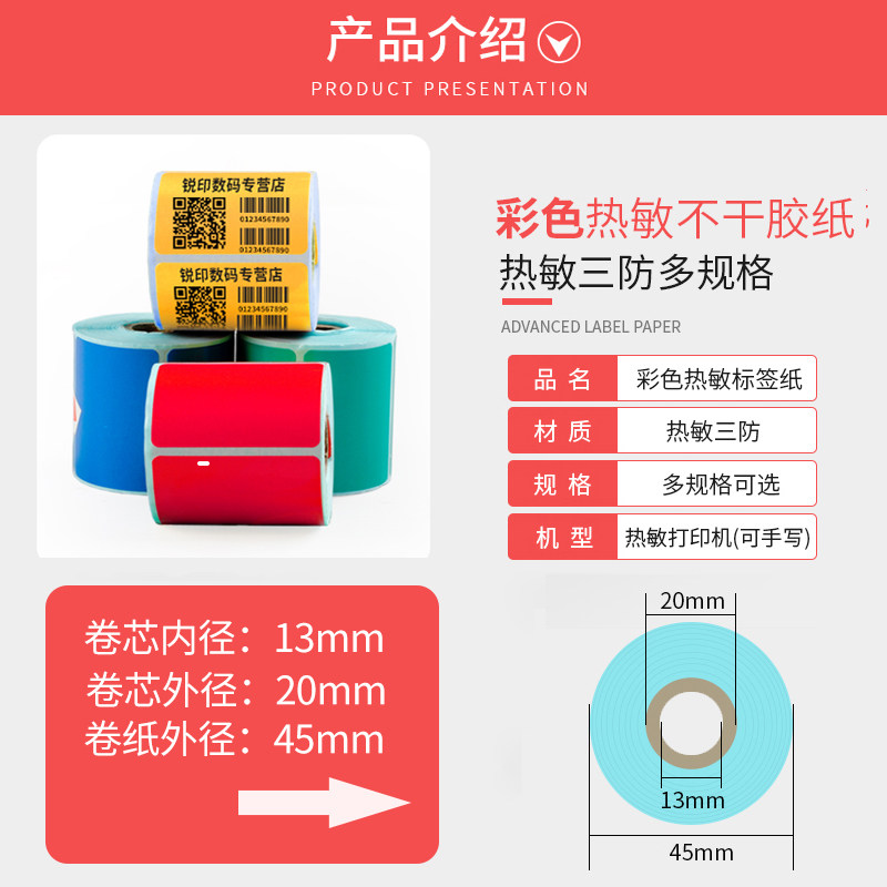 Small core color three thermal paper 40*30mm single row color adhesive label paper codepaper supermarket sticker electronic scale paper 30*20 60*40mm