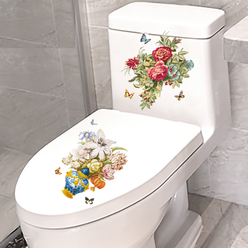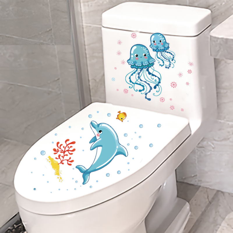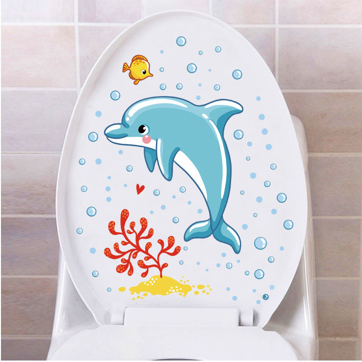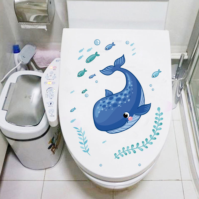 Powder room flower decoration painting personality toilet stickers Toilet waterproof wall stickers funny fun dolphin blue whale wallpaper