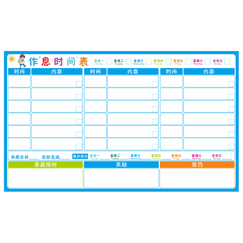 Children's schedule Children's habits Self-discipline table Wall stickers Primary school students learn to punch in Summer vacation plan table Magnetic