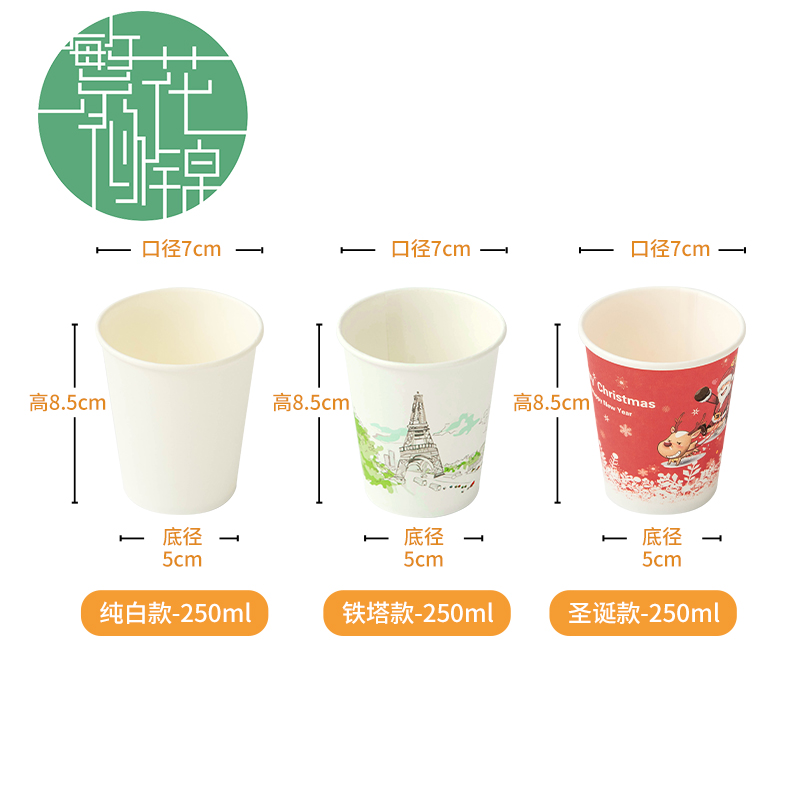 Complex flower specie disposable cup 250ml thickened shower film cup office commercial home wedding paper cup No.