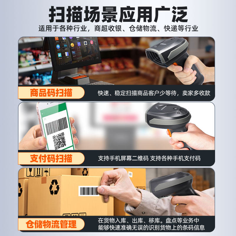 mindeo Minde code scanning gun barcode scanner MD2000 MD6100s QR code scanning gun merchant super cashier mobile payment scanner warehouse scanner logistics express single scanning code gun