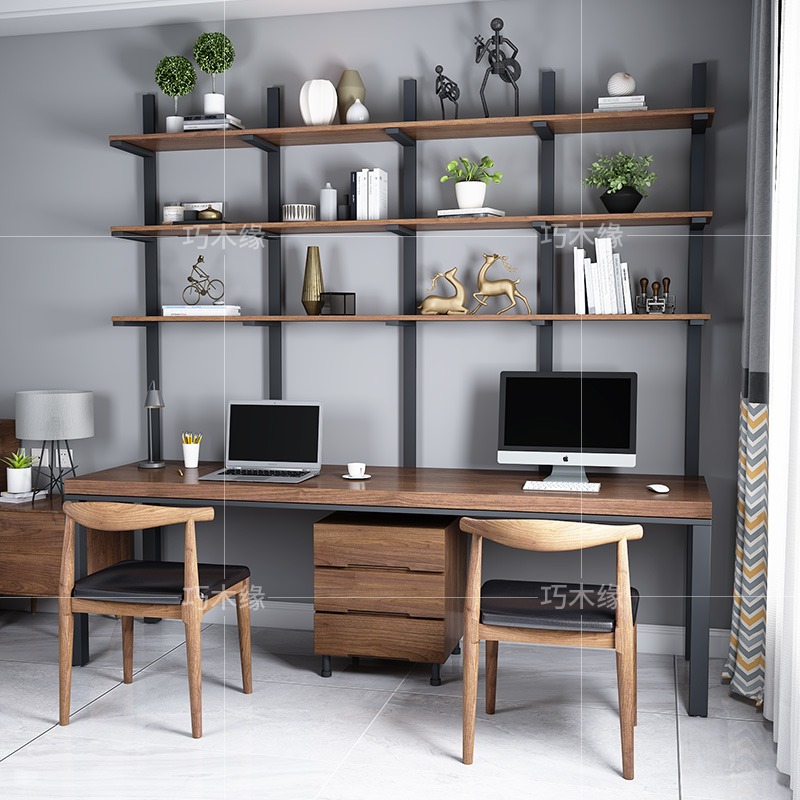 Solid wood desk bookshelf combination American writing workbench long table loft wall hanging shelf computer desk customization