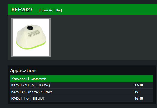 Kawasaki KX250F 17-18 KX250 19 KX450F 16-18 modified air filter core HFF2027