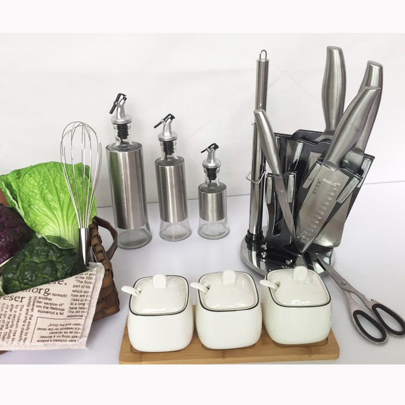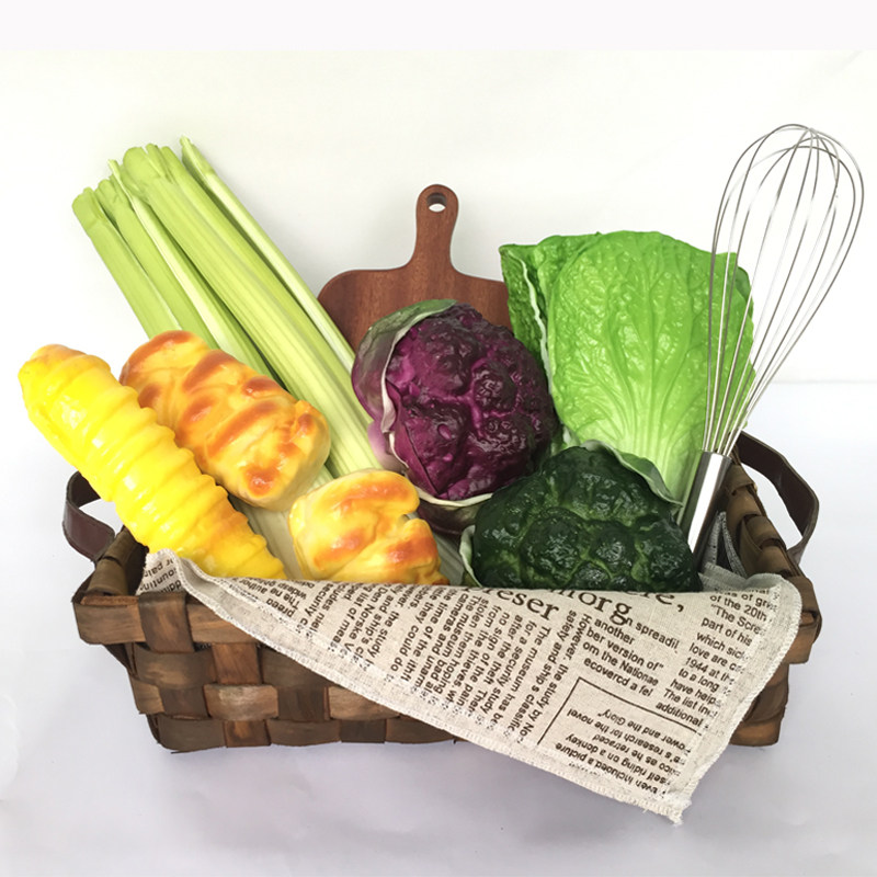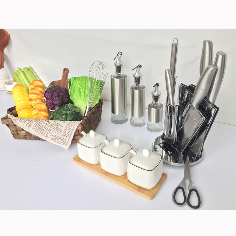 A full set of combination vegetable basket combination glass seasoning bottle (set of three) knife set seasoning jar (set of three) woven vegetable basket caterpillar bag square bag celery purple cauliflower broccoli Chaozhou vegetable green cutting board egg beater