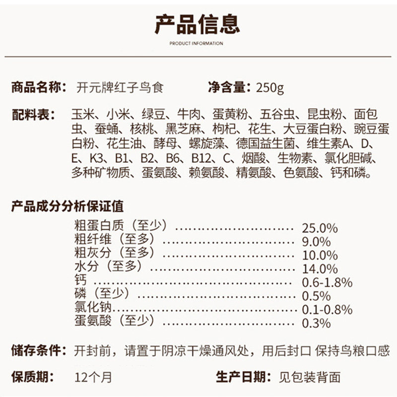 Kaiyuan Bird Food Red Subbird Food Feed Embroidered with Giant Mountain Peacock bird pasta eater Bird food Recent production-Taobao