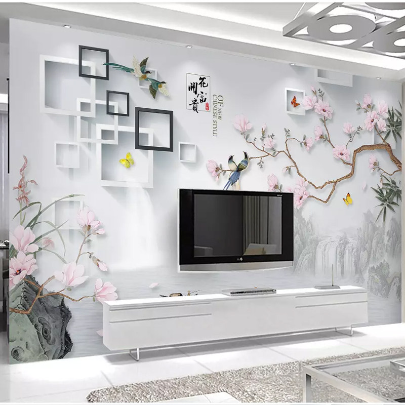 New Chinese TV Background wall integrated board wall Living room Modern minimalist 3d high light painting 8d home and bamboo wood fibre board