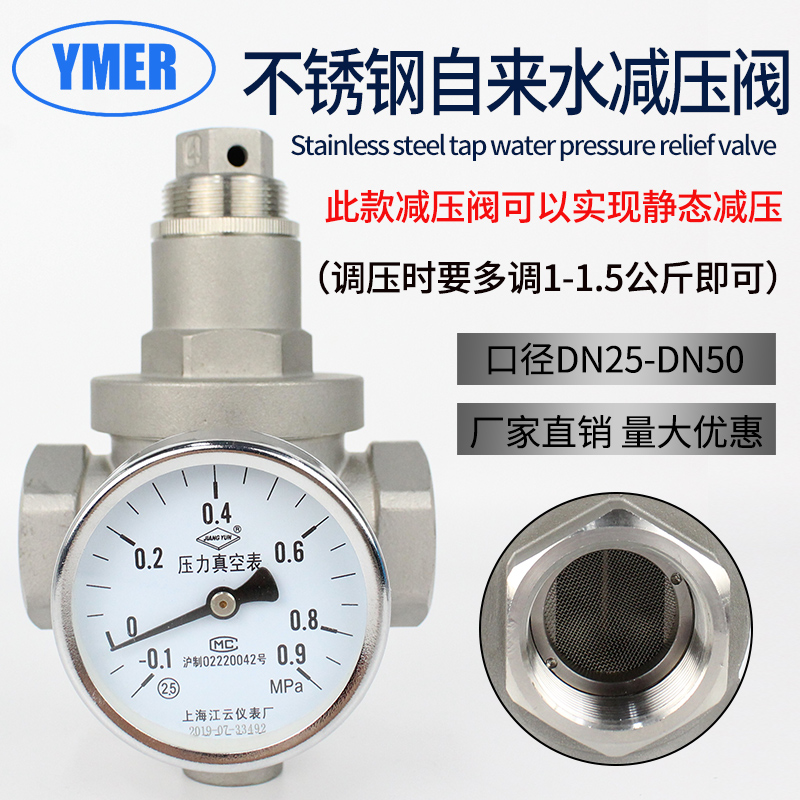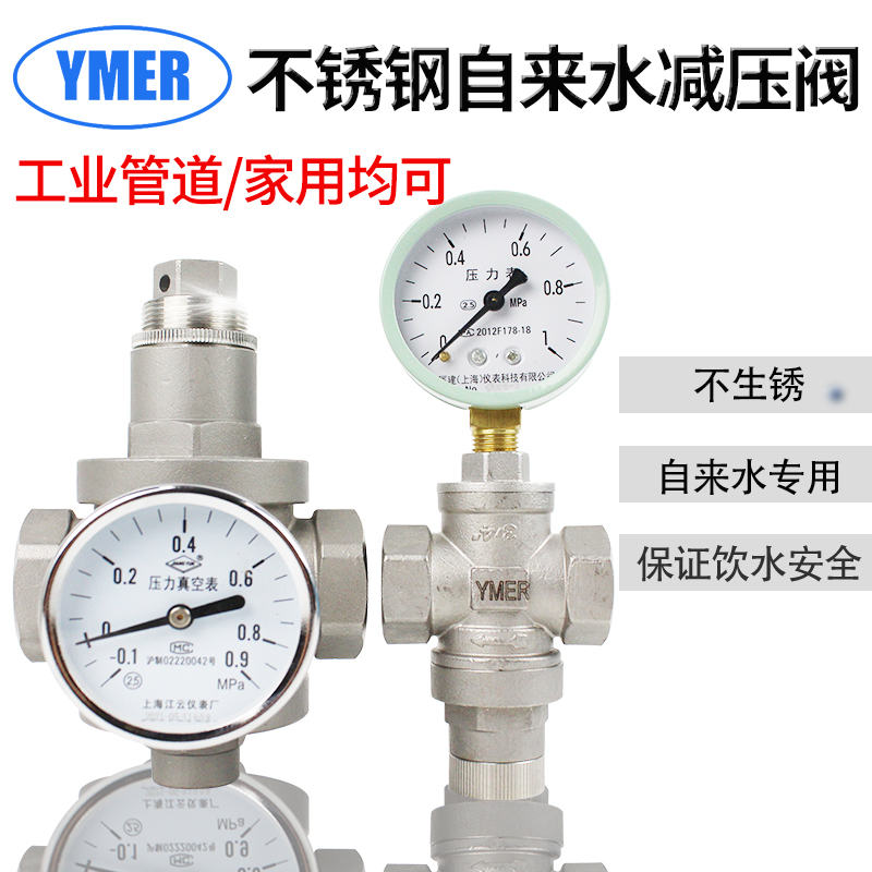 Tap water pressure relief valve 6 min stainless steel household pipeline 4 - point pressure regulatory pressure gauge accessories