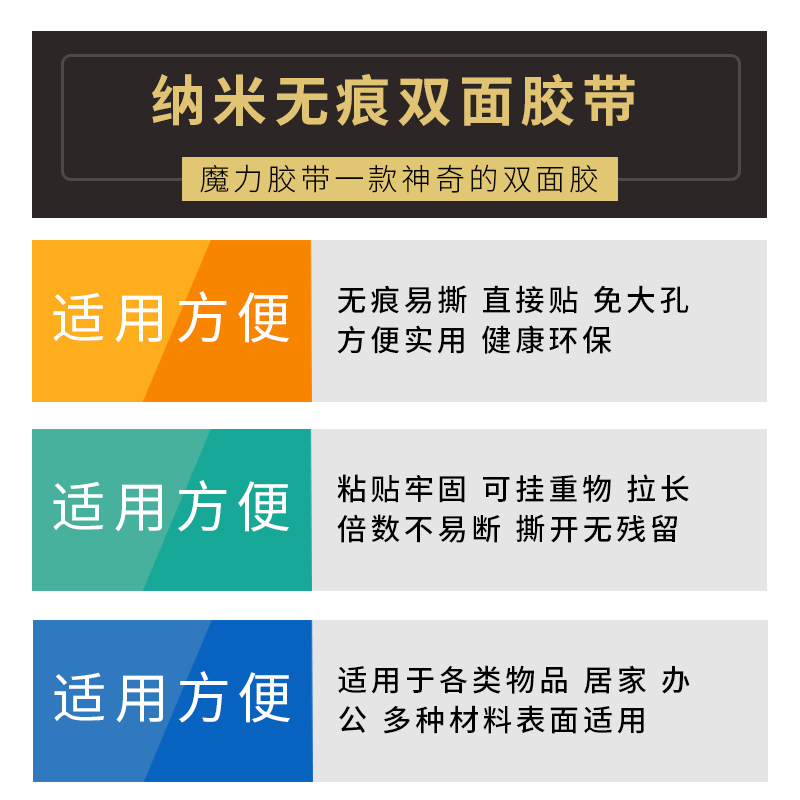 Nano adhesive tape ten thousand times No marks Magic double-sided adhesive ultra-thin transparent waterproof fixed glass wall powerful double-sided adhesive