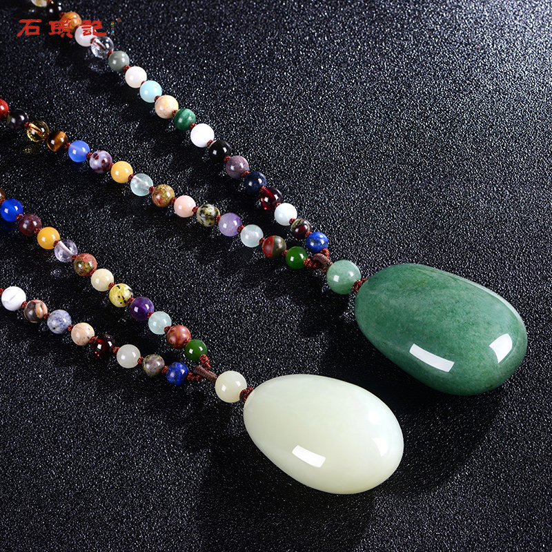 Stone Records Jade Nobleman Hundred Treasures Series Necklace Hetian Jade Pendant Green Aventurine Jade Holiday Gift
