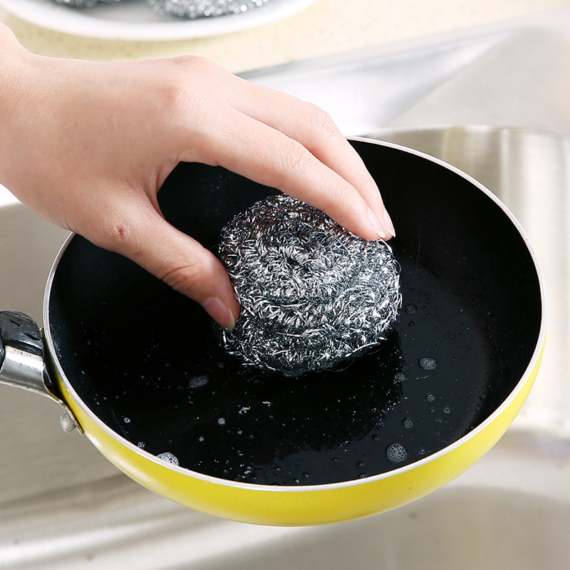 Kitchen washing pan dishwashing brush pan clean steel wire ball metal washing pan brushed clean ball home big no-drop wire brush pan
