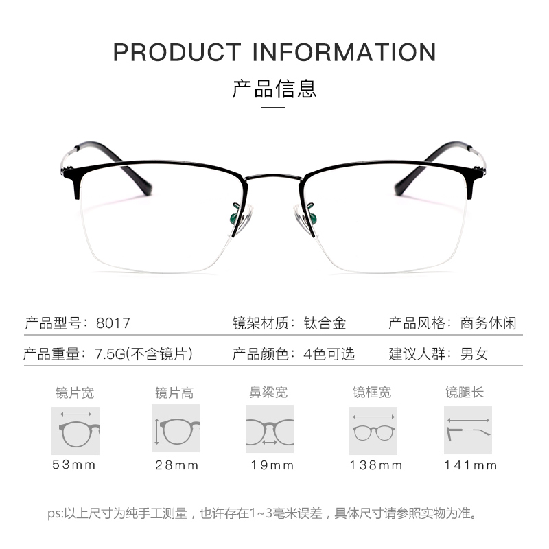 Frame 1 61 color discoloration lens(degree number of color message) (2 in 1)lens 1 67 anti-blue color discoloration lens (degree number of color message) (2 in 1)frame
