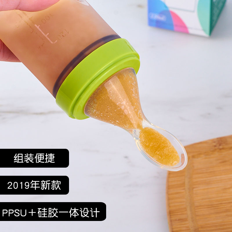 Rice Burnt Spoon Feeding Bottle Squeeze Type Deputy Food Tool Newborn Baby Wide Mouthful Silicone Breastfeeding Water Theorizer Feeding Soft Tablespoon