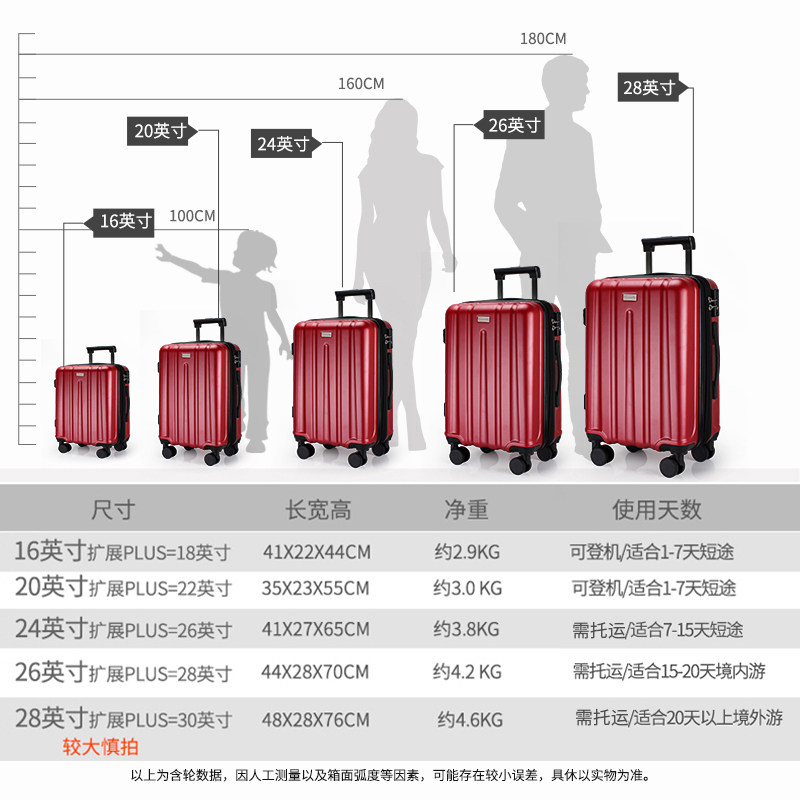 16-inch horizontal can be expanded (the capacity after expansion is equivalent to 18-inch) 16-inch boarding case (horizontal) 20-inch boarding case (suitable for 1-7 days short trips) (explosion-proof zipper safety protection