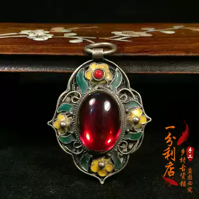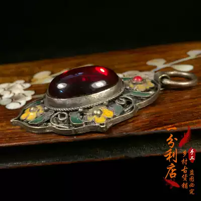Nepal handmade old silversmith court cloisonne roasted blue sterling silver inlaid ruby zircon old objects silver pendant