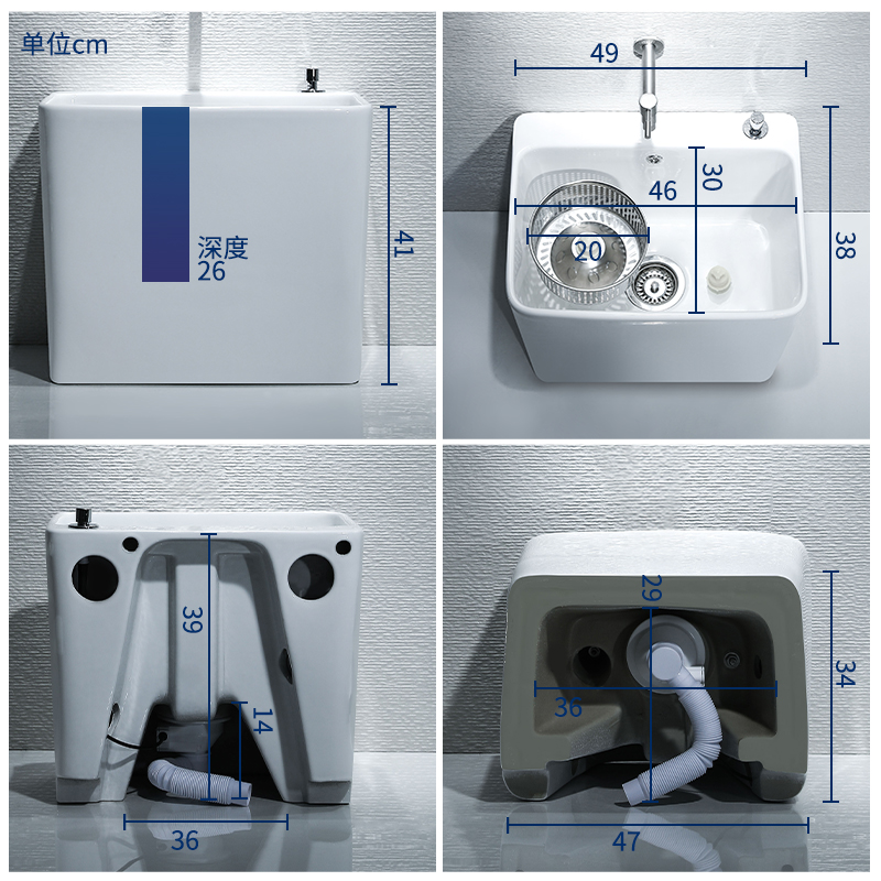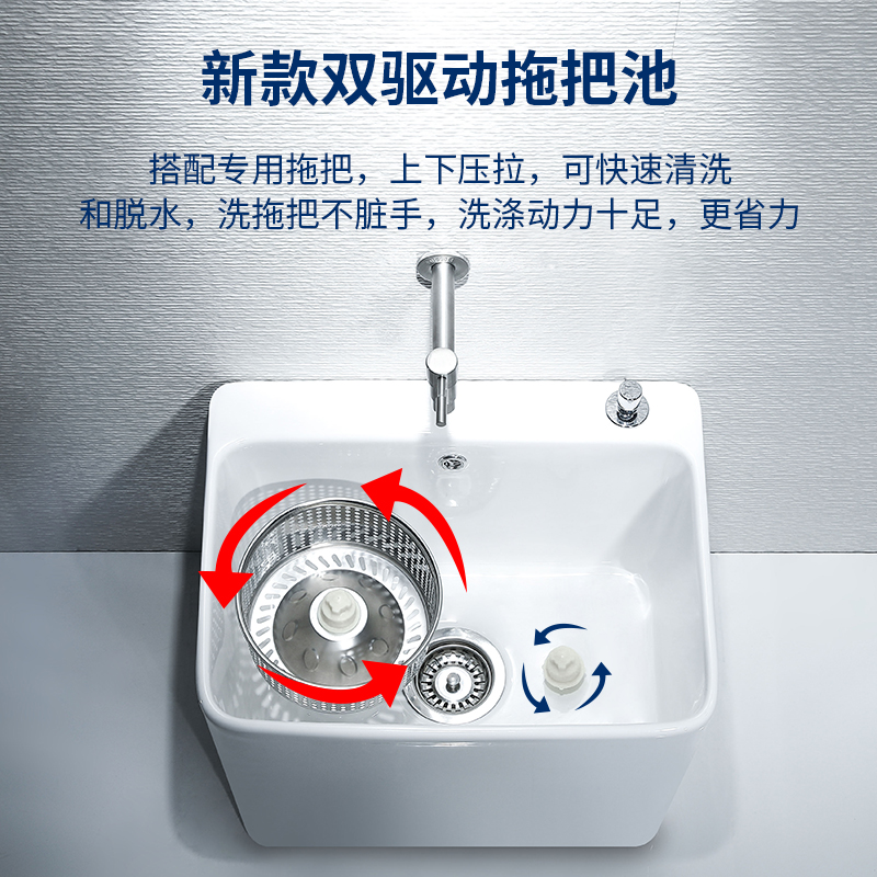 Yuanjiang mop pool balcony large rectangular household washing mop pool mop pool floor mop basin double drive floor-to-ceiling