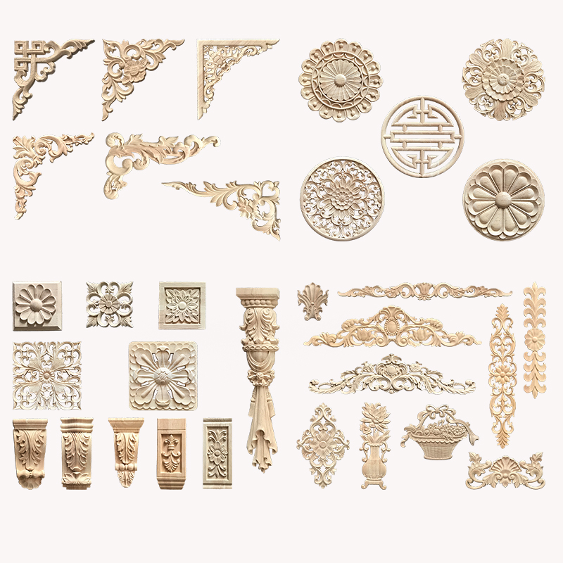 Solid wood corner carved custom European style Chinese solid wood decal antique horn flower carved disc Roman column decal