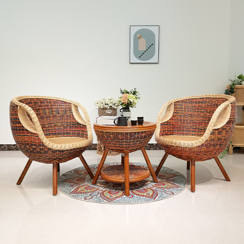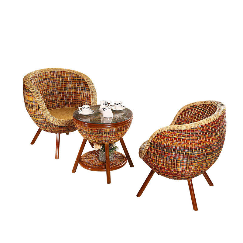 Rattan chair three-piece set balcony table and chairs garden leisure chair combination garden rattan outdoor chair hand-woven simple chair