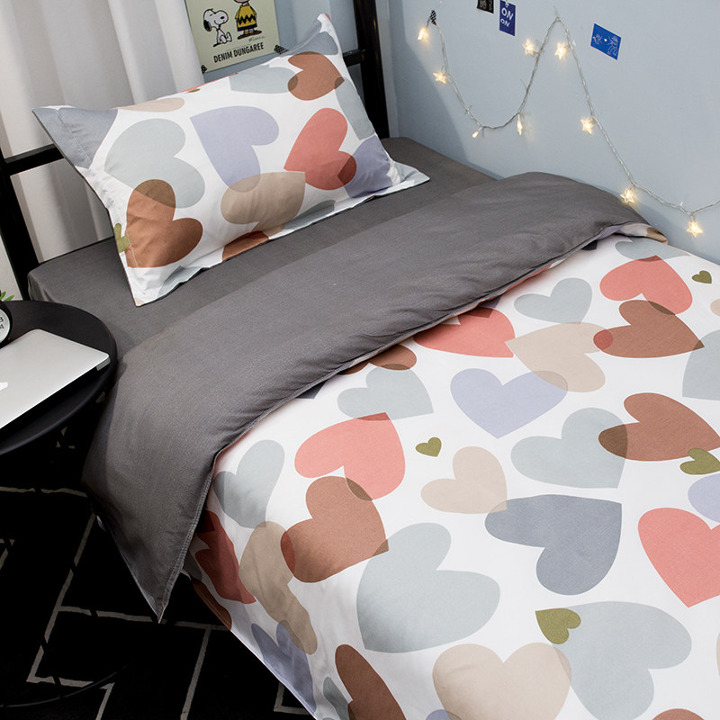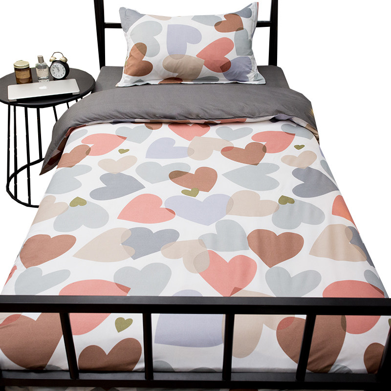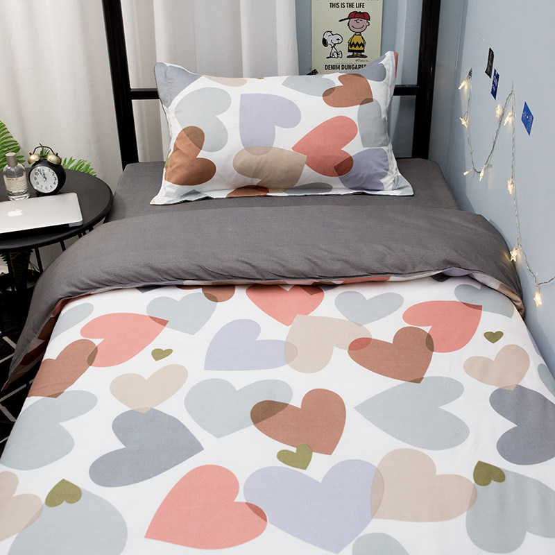 Ins wind bed three-piece set net red bed sheet student dormitory single female quilt cover girl heart 3 four-piece set summer