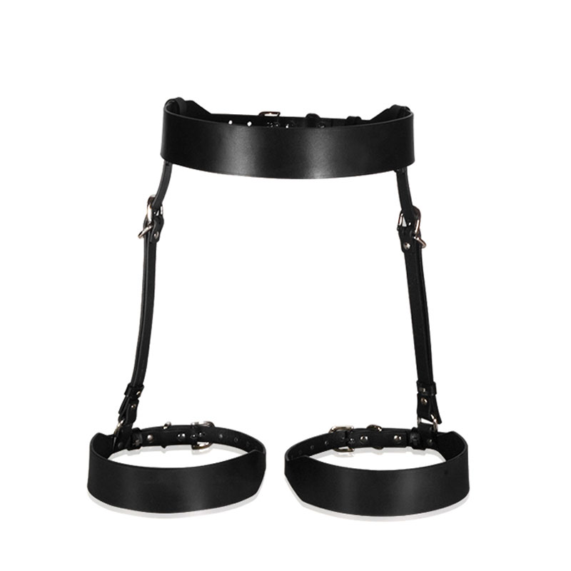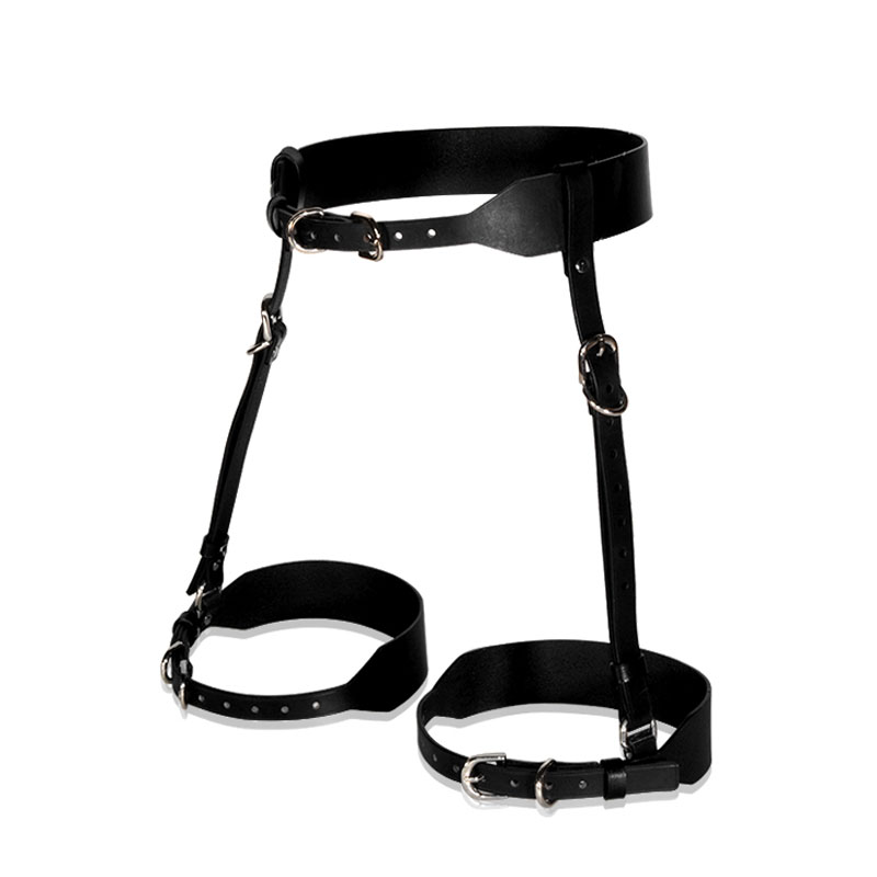 sm flirting fun leather pants Women with tied legs and cuffs alternative discipline wearing clothes bondage hip belt pants