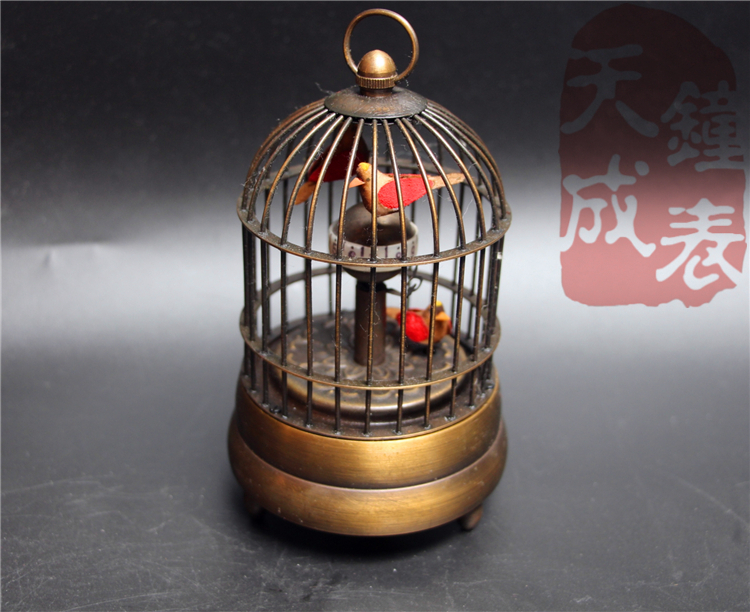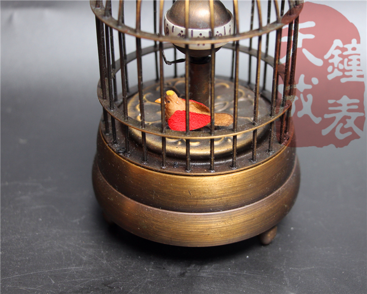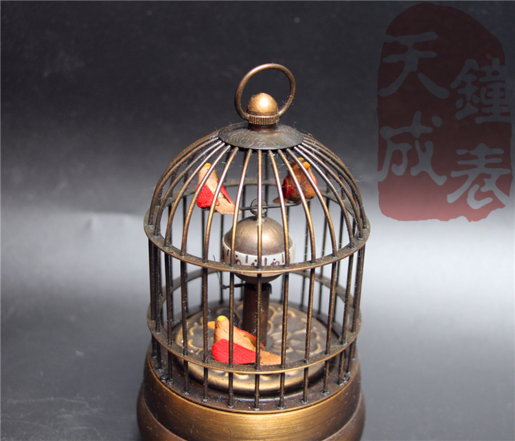European retro-copper decoration bird cage mechanical clock on the old-fashioned string clock tables