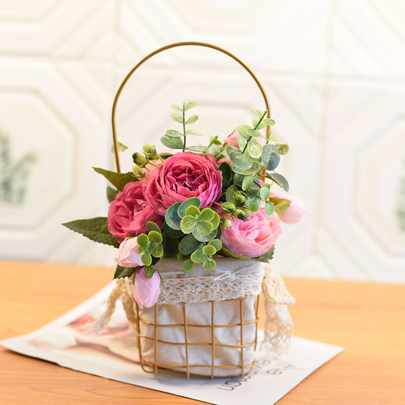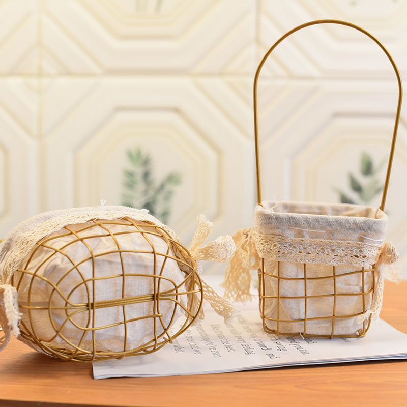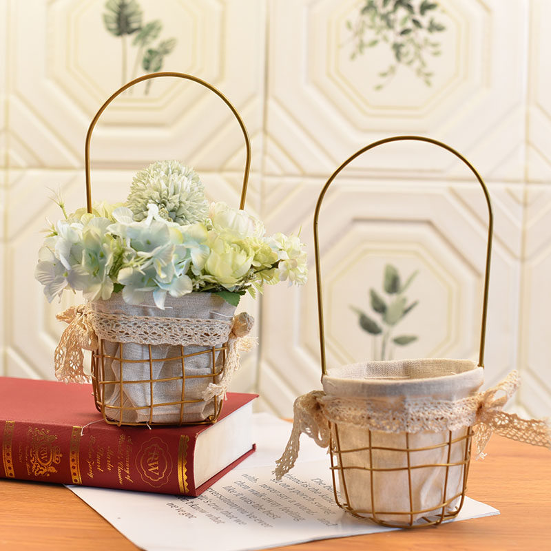 Metal Mini Flower Basket Portable Flower Arrangement Flower Dried Flower Vase Wrought Iron Woven Gold-plated Flower Basket Material Desktop Placement