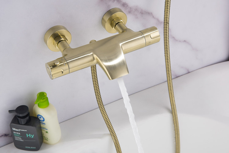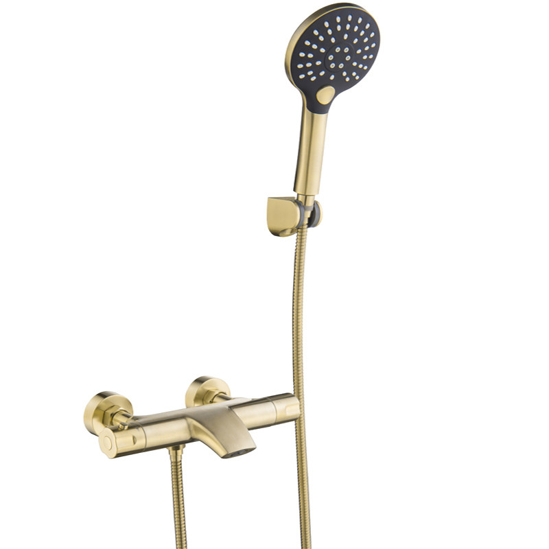 Wire-drawn Golden Thermal Shower Set All Copper Main Bathroom Bathroom Bathroom Kit Windows-free Temperature-free Intelligent