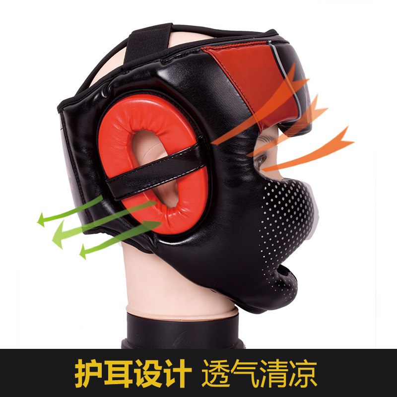 Kang Mei Que Sanda Head Pad Adult Professional ThickEn Whole Monkey Face Fighting Head Pad Children Training Muay Thai Boxing Head Guard