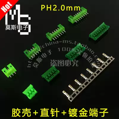 Red, yellow, blue, green, black and white color PH2 0mm rubber shell straight curved pin seat full gold-plated Terminal 2P3456789-16 core