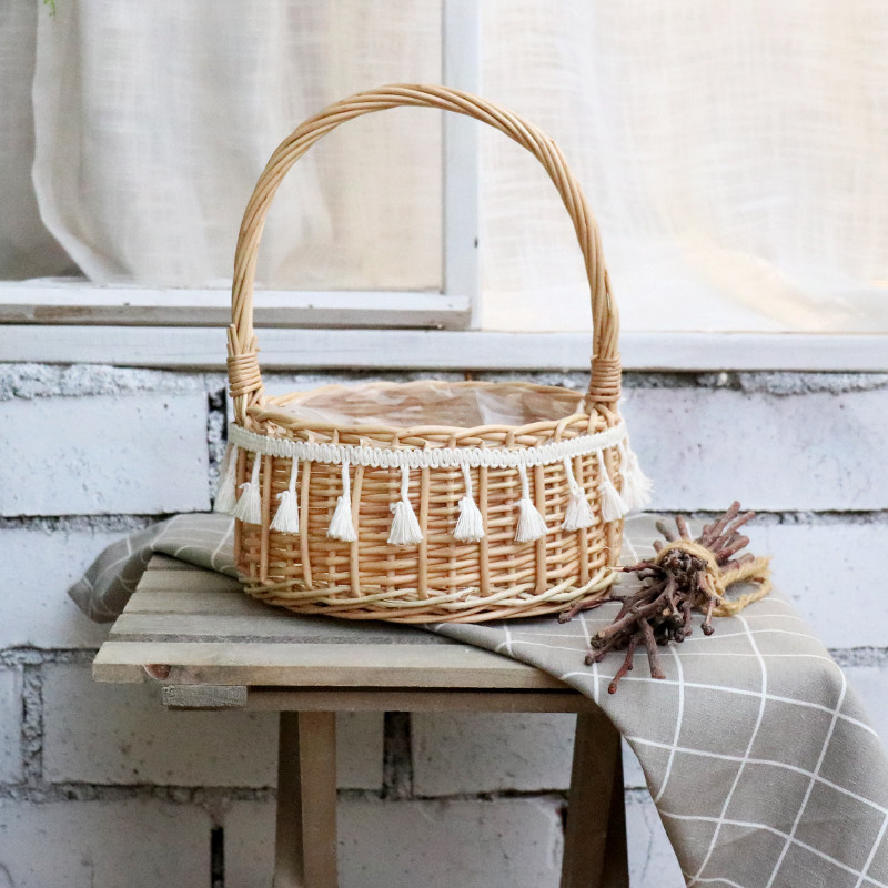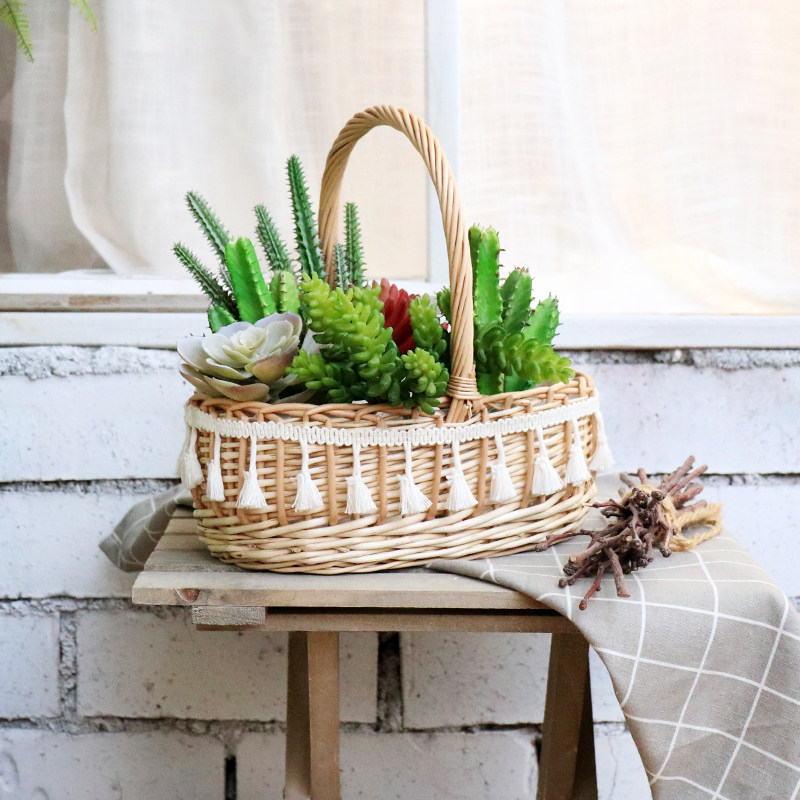 Creative Refinement Hand Woven Hand-picked Basket of Rattan Choreograpes Basket Inserts Flower Basket Multi Meat Basket Green Plant Flower Pots