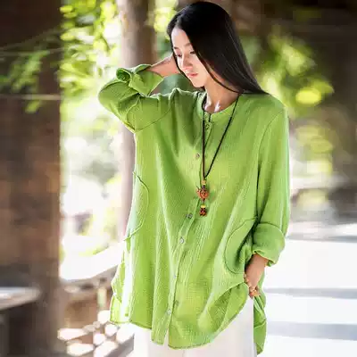 Fashion Chinese style flax Taijiquan practice clothes morning exercise clothes Spring and autumn cotton linen Tai Chi women's coat