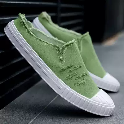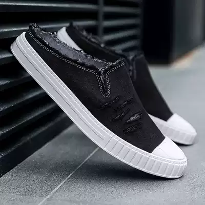Summer Baotou half slippers Men's slippers lazy one-legged canvas heel-free sandals trend personality men's slippers