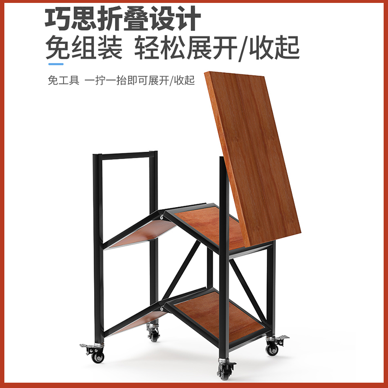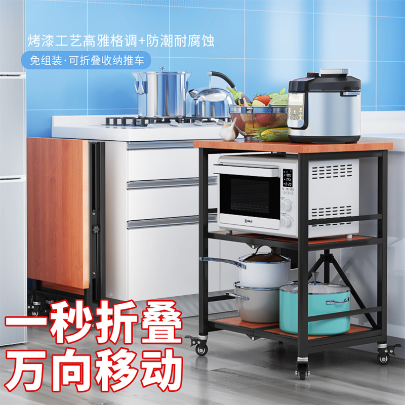 Installation-free folding stainless steel kitchen shelf can move multi-layer floor-landing microwave oven pot collection layer