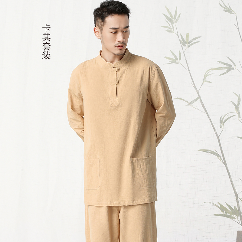 Lay clothes Meditation meditation clothes Men's Chinese style cotton and linen suit Tea clothes Buddhist clothes Zen literature and art retro