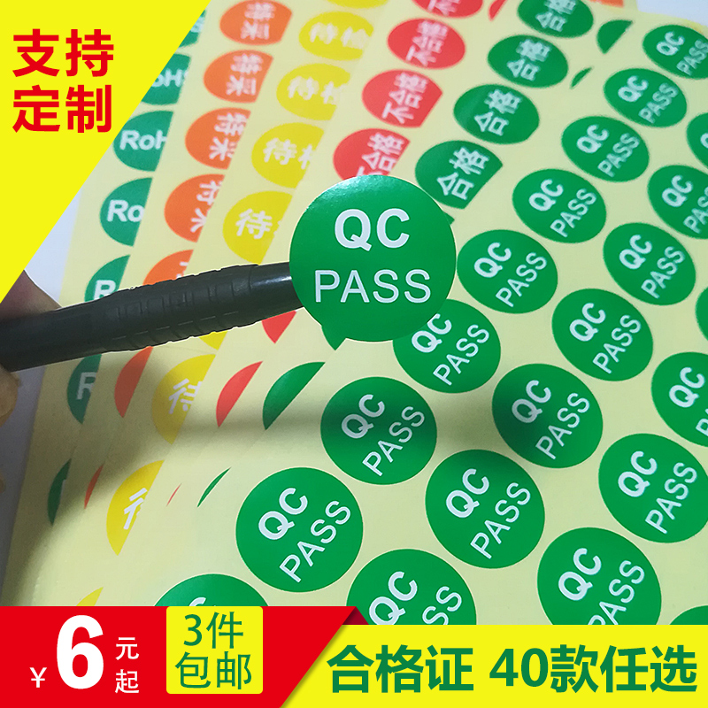 QC PASS label circular green quality inspection and inspection ROHS product stickers matte silver adhesive set to do