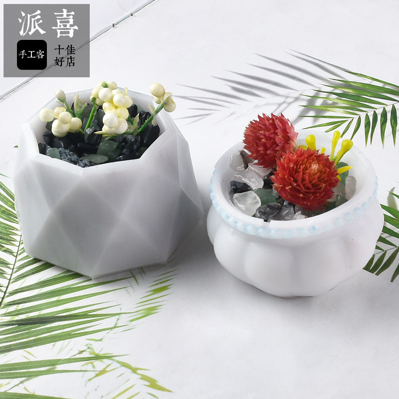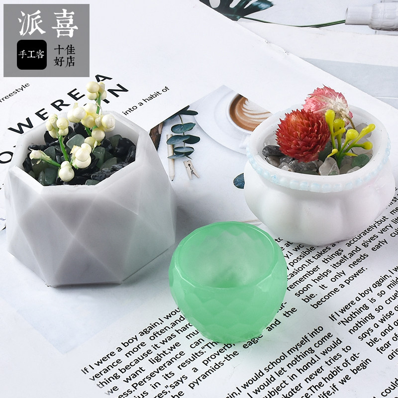 Paixi diy crystal glue hexagonal round lace silicone mold Cigarette ashtray flower pot pot mold decoration