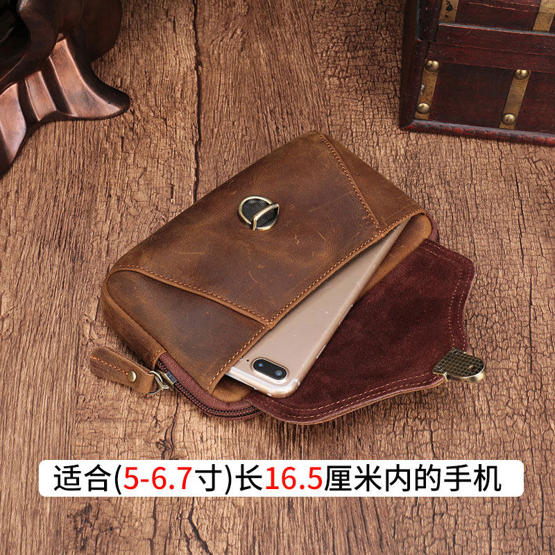 Mobile Phone Bag Men's Hanging Belt Mobile Phone Protective Case Leather Waist Bag Men's Horizontal Style Older People Wearing Belt Crazy Horse Leather