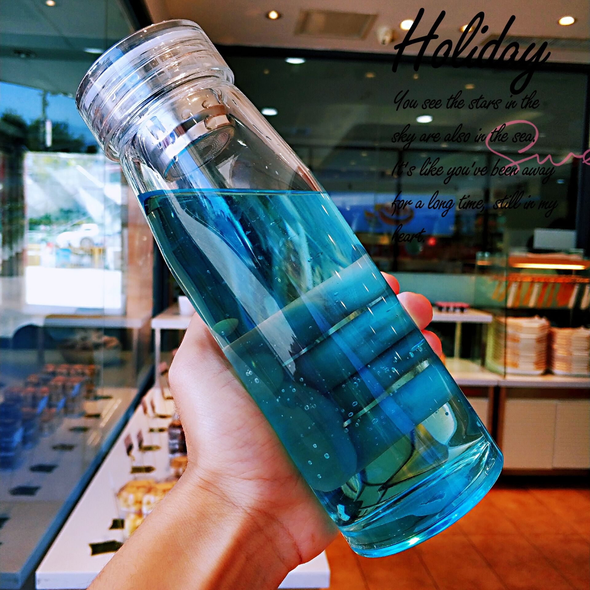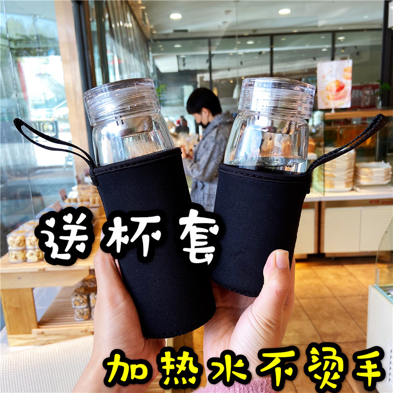 Han Style Water Glass Ins Portable Trend Male Student Transparent Glass Cup Female Fresher Brief About Cute Personality Accompanying Cup