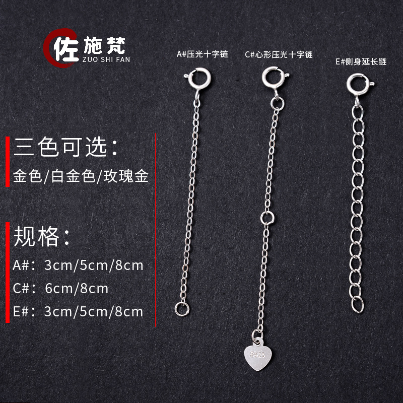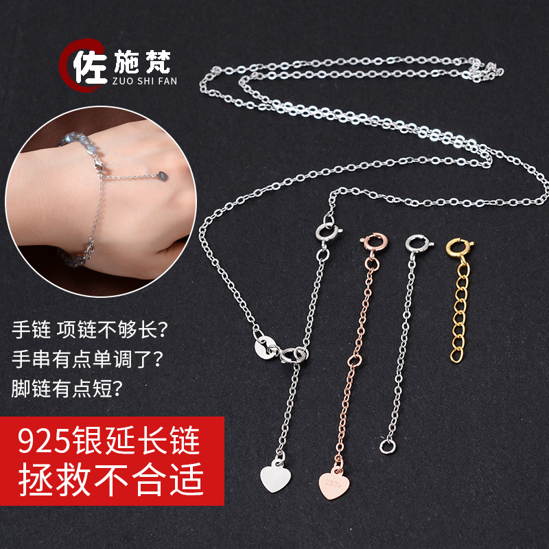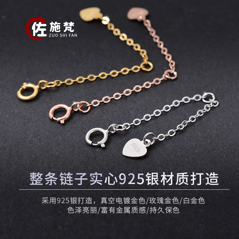 Zoshifan 925 silver chain bracelet necklace lengthened extension chain tail adjustment chain accessories plated 18K rose gold