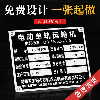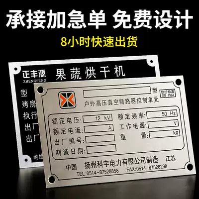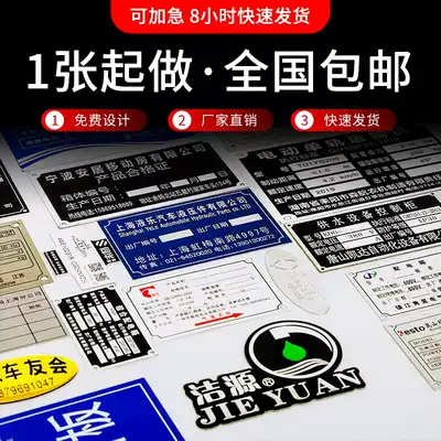Customized nameplate customized metal stainless steel copper aluminum alloy iron panel motor mechanical trademark logo screen printing corrosion laser engraving machine equipment identification aluminum sign making