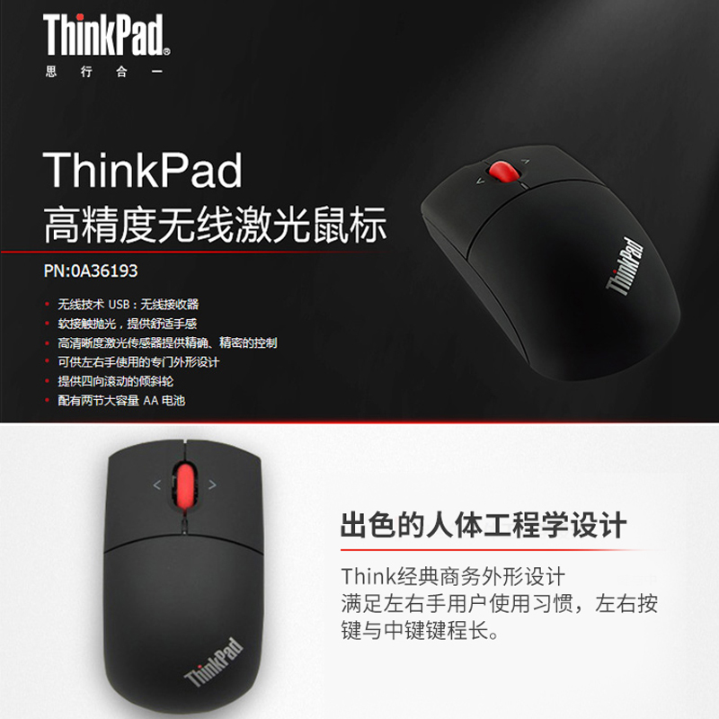 Lenovo Thinkpad Wireless laser small black pen electric sliding mouse with USB receiver 0A36193 small black sliding mouse pad