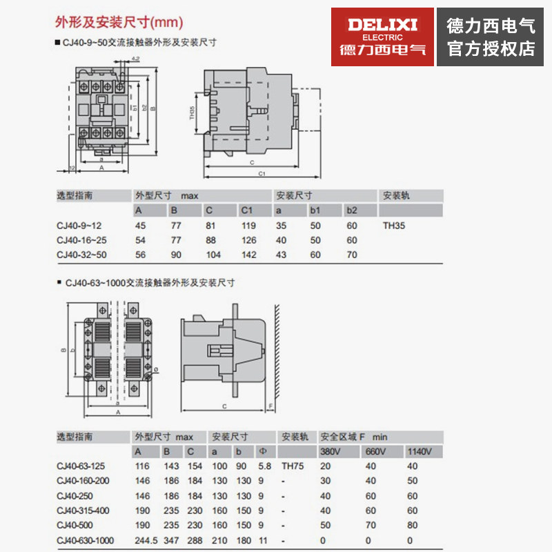 DeLixi 220v AC contactor CJ40-80 100125160250315400630800 A