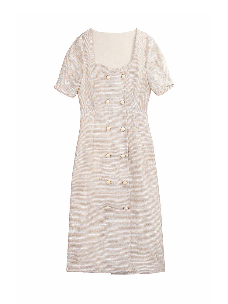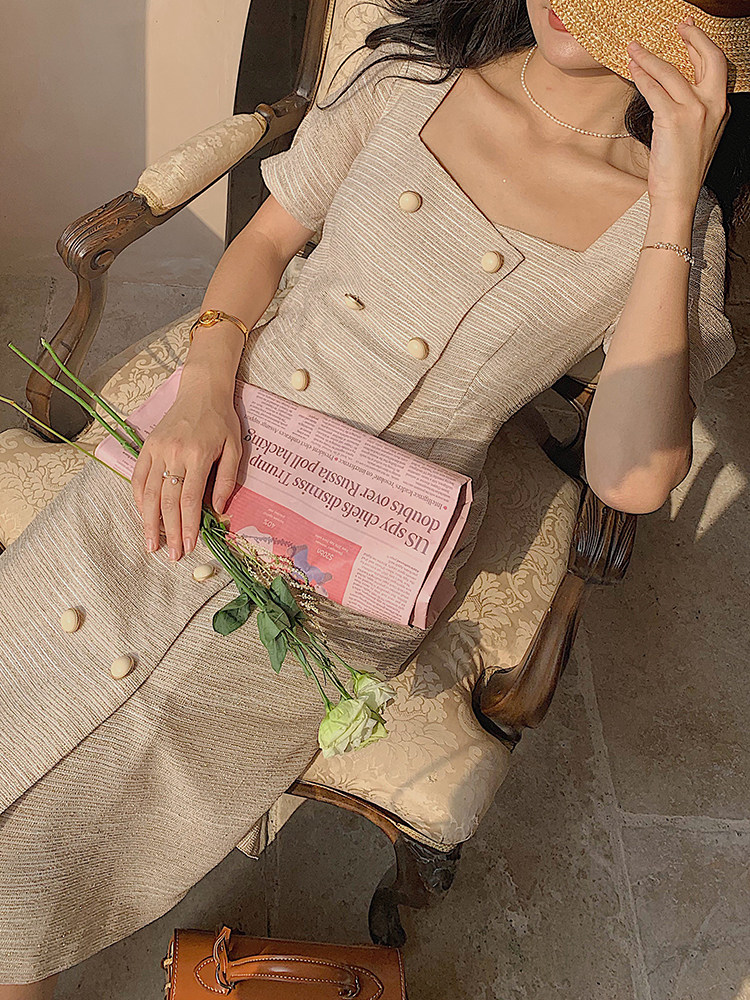 From a Zhixun French bellflower skirt retro square collar dress Hepburn style lady temperament dress double breasted